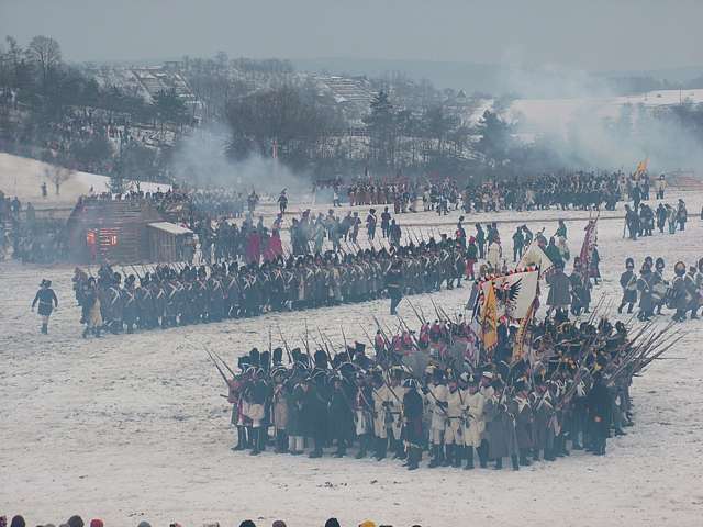 Придумали чехи. Проводят - каждый год. Только в этом году с особым размахом. Участвуют французы, австрияки и наши. Наших в этом году было - аж 500 человек. В России этим занимается господин Соколов из Питера .(автор многих книг по Наполеону и этой эпохе) А вот сеКСу - там нет. Холодно ......