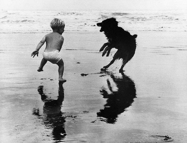 когда двое малышей-4 -летняя доча с черными волосами до попы и 4-месячный ротвель носятся по берегу,бразгаясь и "тявкая" друг на друга.