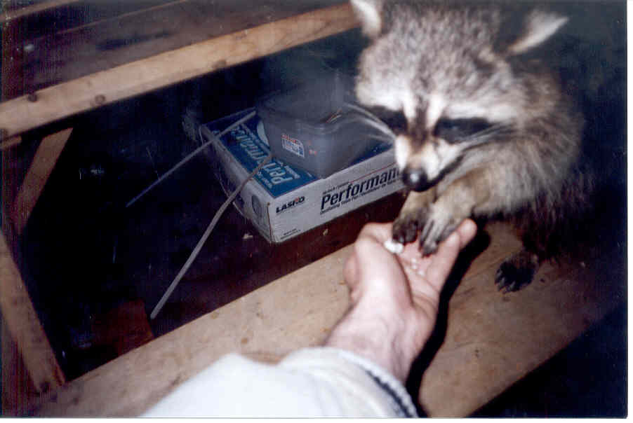 Со мной человек один начал работать.Так вот парень весьма неординарный.И экстремал,и восточные боевые искусства знает и в кино снимается и снимался в Росси и здесь тоже...Ну да не о нем речь. Природу любит - до безумия. Так вот в мае прошлого года,(даты на фотках попросту не выставленны),был он в канадских лесах.Рядом с хижиной,где он обител,жил енот.Прозвал он его Васей.И уже на второй день подружились они так,что и представить нельзя...А посмотреть - можно!  Ну не бояться звери людей в Канаде.Доверяют!