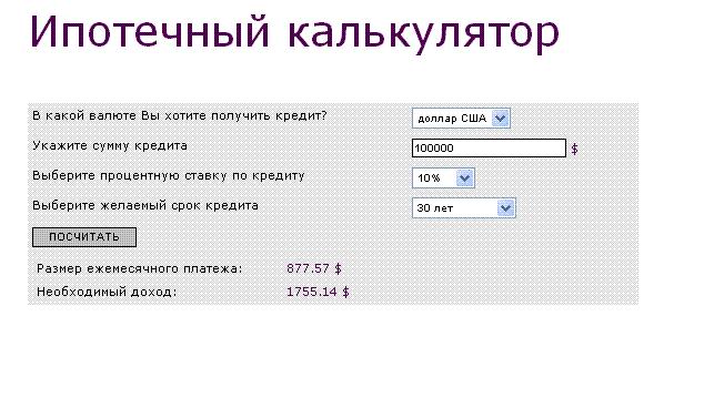 Но банк, который рекламирует эту услугу оказался настолько любезен, что на своем сайте сделал калькулятор, с помощью которого можно все относительно точно расчитать. Я решил воспользоваться этой услугой и... мягко говоря ох@ел