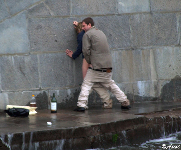 Похоже, это не дождь, а ветер, судя по стекающим потокам. И боже ж мой, как им неудобно