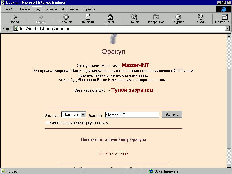 Ввёл свой Ник и узнал, что обо мне Оракул думает...