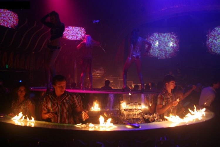 Посетители клуба утверждают, что местные бармены так увлеченно "балуются с огнем", что его языки порой жарко "щекочут" одежду и волосы пьющих текилу.