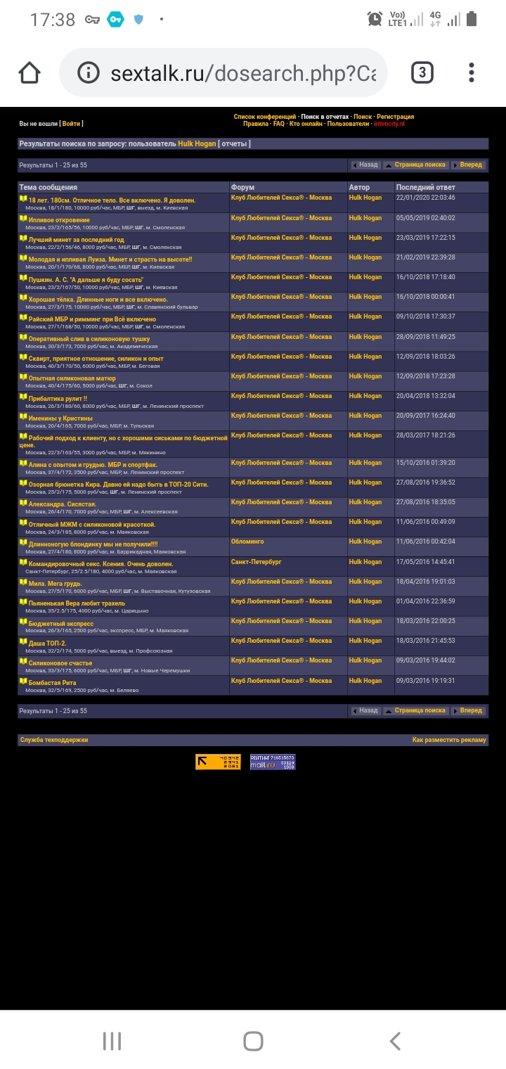 Цитата: Быть может, вам это покажется удивительным, но да) заголовок отчета + локация (киевская или смоленская), в которой кроме этой сети вроде и нет других точек) заходим в любой отчет Хогана в локации на киевской-смоленской и видим типовые анкеты с "е*ите меня во все дыры, все включено"))