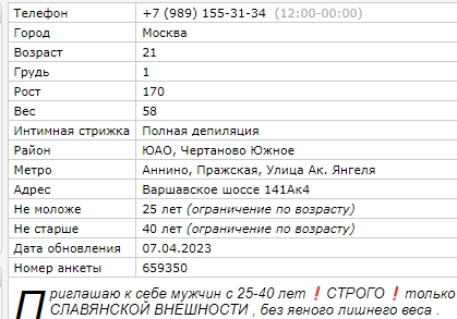 по номеру анкеты легко находится https://y.intimcity.com/indi/anketa659350.htm один из отзывов