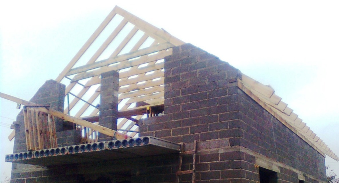 а сама конструкция крыши вот такая- стропила в коньке схвачены замком и посередине струны.