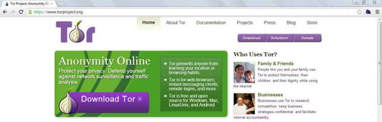 1. Отправляемся на сайт проекта http://www.torproject.org и жмем левую фиолетовую кнопку во втором ряду сверху(Download).