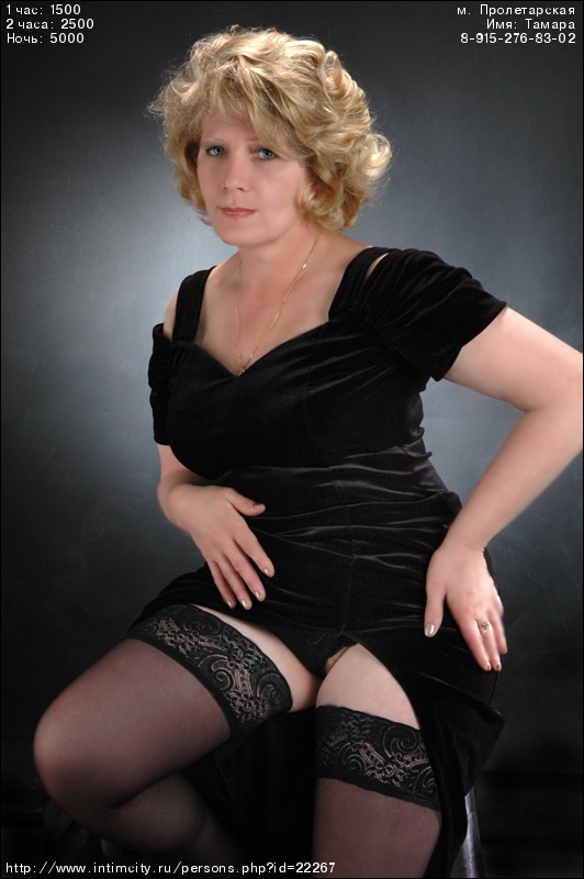 Поднимаюсь в известную хату,дверь открывается и меня встречает вот это:http://www.intimcity.ru/persons.php?id=38395 которую я уже трахал именно здесь и говорит,что Саша еще занята и может быть она на что-нибудь сгодиться. Вот это попадалово! На что она годиться я знаю.Разворачиваюсь и съ...бываю. Но т.к ипаться хочется открываю свой тилипон,ищу в районе Пролетарки что-нибудь еще.Нахожу Тамару,созвон,навигация,прибытие.Встречает в накидке,черных чулках и туфлях такого же цвета.На вид постарше заявленных лет,думаю уже за 50,большой живот-очень критично,грудь не имеет никакой упругости.Хата в хорошем состоянии, ванна зачет,КЖ есть.Предлагается тапки,кофе,массаж с маслом,затем мой йенг обрабатывается мирамистином,обрезинивается с помощью рук,делается минет,приглашен КУ,встречен с энтузиазмом, ну и затем переход в ЗКП отстрел.Предлагается кофе,короткий треп, на второй заход времени уже нет да и желания тоже,расчет.